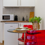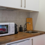 •  Pequeñas cocinas totalmente equipadas con vitro portátil, nevera, microondas, tostadora y cafetera.